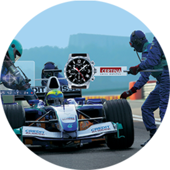 En tant que sponsor officiel de l’écurie Sauber Petronas, Certina célèbre ses débuts en Formule 1, une discipline à laquelle elle restera fidèle pendant de nombreuses années. Dans le même temps, la marque se félicite du titre de champion du monde en 125 cc remporté par le pilote moto Thomas Lüthi, qu’elle sponsorise depuis le début de sa carrière. Ces succès sportifs se traduisent par le lancement de la DS Podium, dont le design sportif et la précision en font jusqu’à ce jour l’une des familles de montres Certina les plus populaires et les plus vendues.