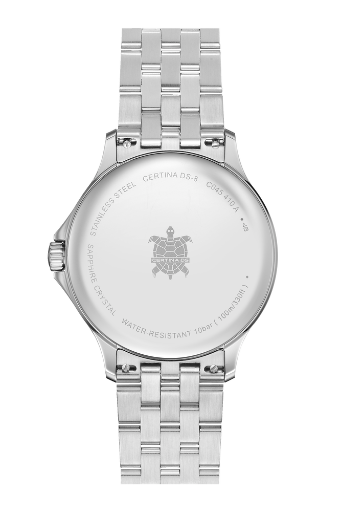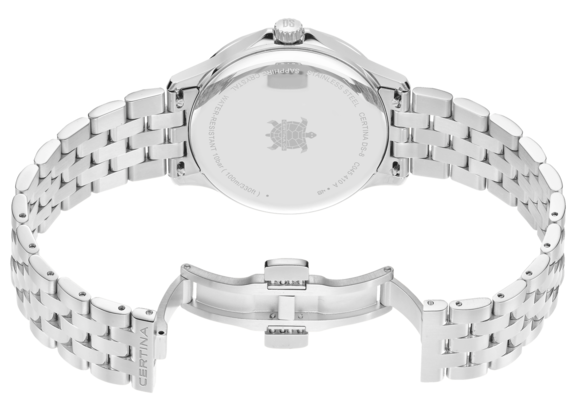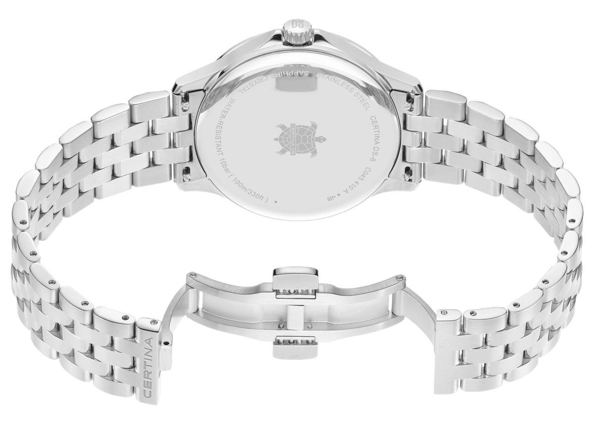 L’acier inoxydable 316L utilisé par Certina pour le boîtier, le bracelet et le fermoir est très résistant à l’usure et la corrosion. Sa teneur en nickel étant très faible, il ne produit pas de dépôt sur le poignet et minimise ainsi le risque d’allergie.
