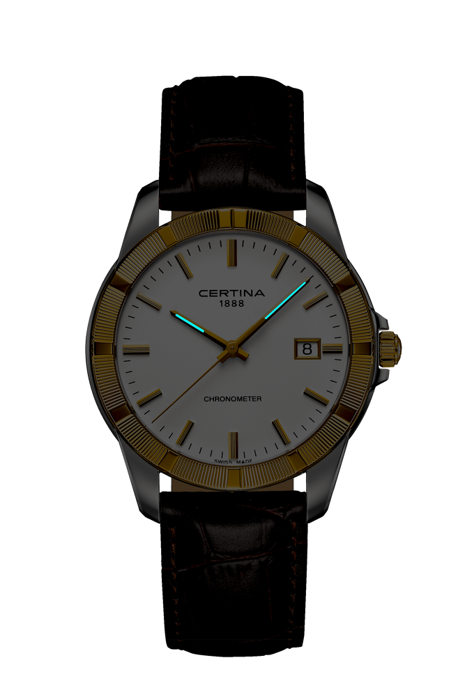 Genau, genauer – Chronometer. Durch die Zertifizierung einer unabhängigen Prüfstelle wird bei einem Chronometer die Präzision der Uhr offiziell bestätigt. Dieses Certina Modell wurde bei der „Contrôle officiel suisse des chronomètres“ (COSC), der offiziellen Schweizer Kontrollstelle, getestet und belegt seine Qualität mit einem Zertifikat.