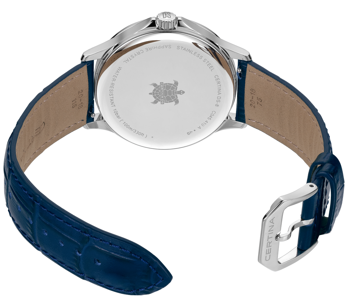 Designed for discerning gentlemen, the Certina DS-8 Gent 40mm watch combines precision with elegance. Its quartz movement ensures impeccable accuracy, meeting the highest horological standards. Featuring a date window, it blends subtlety with functionality for optimal ease of use. With its end-of-life (EOL) battery indicator, it guarantees optimal reliability. With its refined and balanced design, the DS-8 transitions effortlessly from business settings to formal occasions. Sophisticated yet versatile, it is a timeless expression of Certina’s commitment to performance, reliability, and craftsmanship.