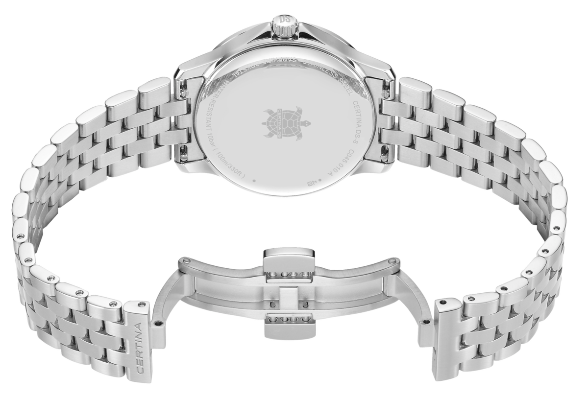Precise and elegant, the Certina DS-8 Lady 31mm embodies the perfect blend of refinement and performance. Designed for women who appreciate timeless elegance, it is powered by a Precidrive™ quartz movement, ensuring exceptional accuracy. Its display features a date window, adding a touch of practicality to everyday life, while the DS (Double Security) system enhances durability and reliability. With its sleek design and absolute comfort, this watch is an invitation to understated elegance, gracing every wrist with distinction.
